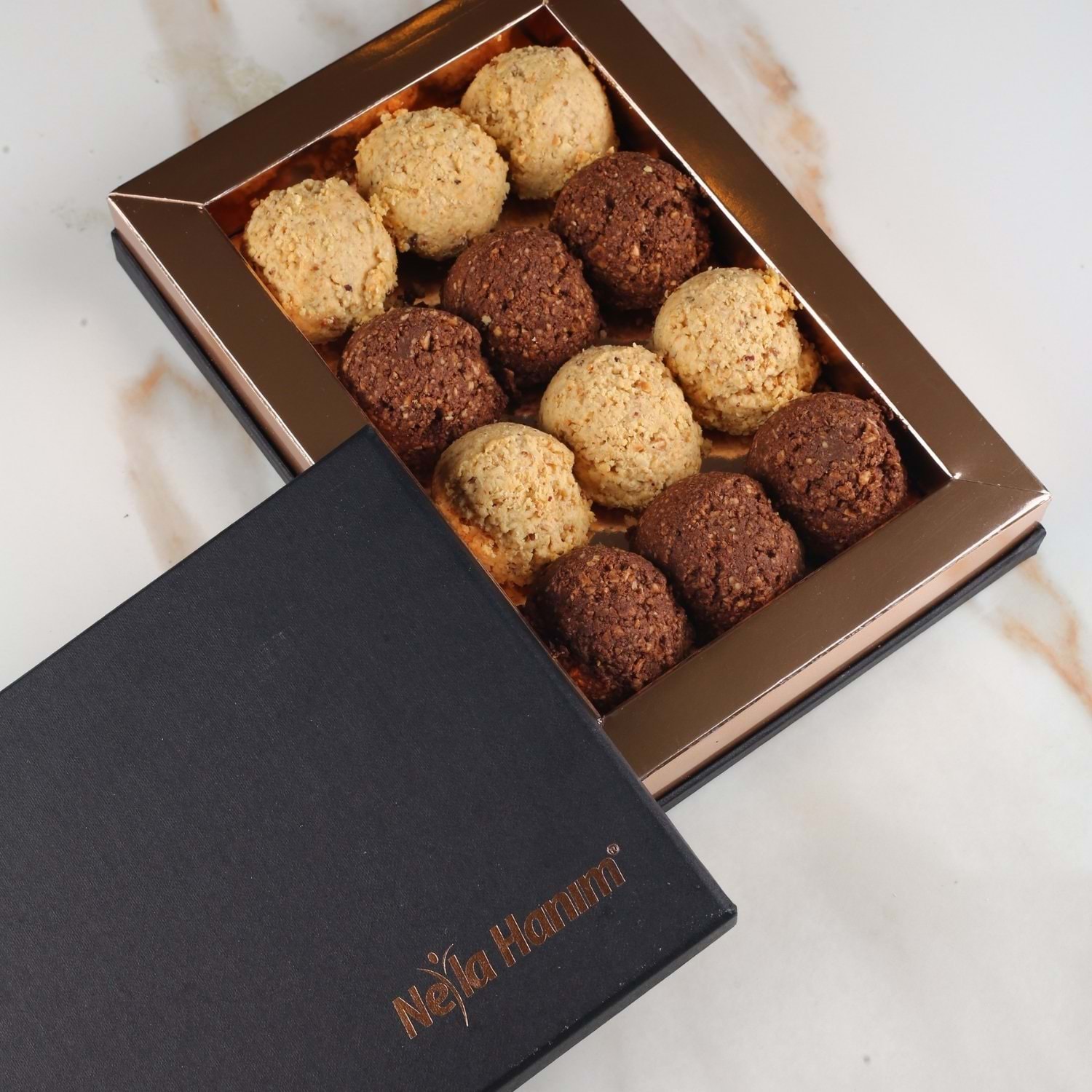 İsminden de anlaşılacağı gibi bol çikolata ve bol fındığın benzersiz buluşması. Fındıklı Nejla Hanım Kurabiyesi çikolata ve fındık sevenlerin vazgeçilmezi olmaya hazır, peki siz onun lezzetine hazır mısınız? Peki, özellikle bu kurabiyeyi Nejla Hanım Ev Tatlılarından neden yemelisiniz? Bunun en önemli sebebi ilk olarak tamamen doğal hiçbir katkı maddesi kullanmamamız. İkinci olarak malzemenin en bolunu, en lezzetlisini kullanmamız. Üçüncü olarak tamamen hijyen kurallarına uyarak hazırlamamız. Ve son olarak içine kattığımız bolca sevgimiz ve öz verimiz.